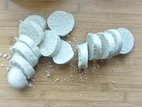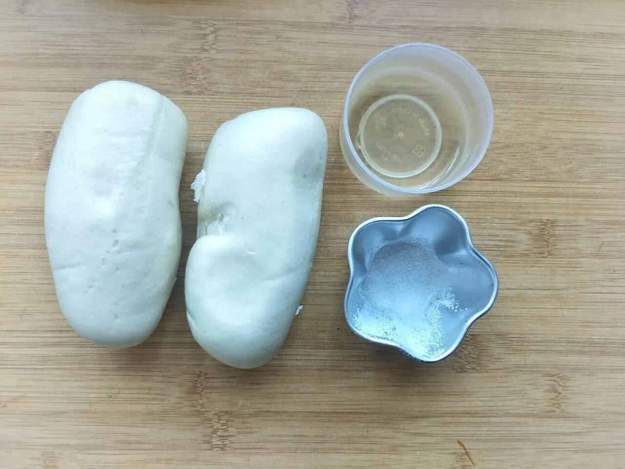 1.准备所需要的食材用料。这里的馒头最好是用买来的馒头,买来的馒头比较柔软细腻,烤出来的口感会更加酥香一些。把馒头放进冰箱冷藏室冷藏一晚上,冷藏过的馒头比较容易切片儿。