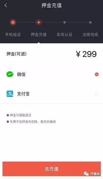 4. 最后用微信或支付宝支付押金299元(可退还)。