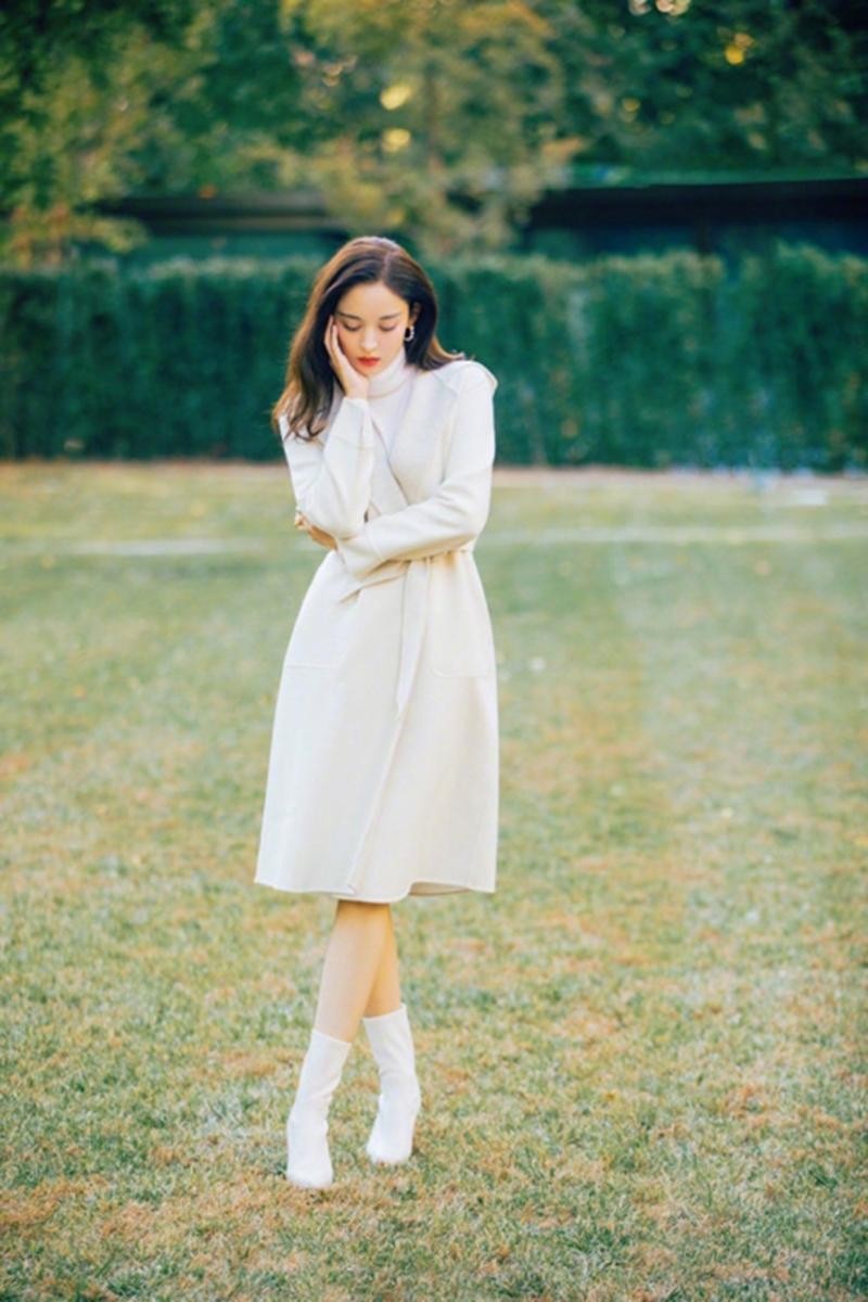 或者我们也可以学习一下古力娜扎的这种女神的穿搭法。当天古力娜扎选择了一款白色的高领毛线衣,搭配上了白色的收腰款毛呢外套,脚踩一双白色的高跟鞋,这一身装扮不仅是非常的温柔有气质,而且还有几分大气感。