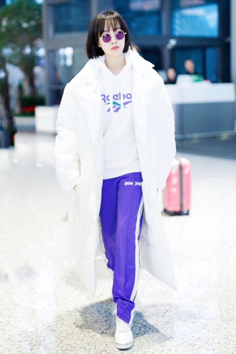 宋茜是稳妥妥的穿搭女神看她的这一身穿搭,其实你也能够学到不少,当天送钱选择了一款白色的宽松卫衣,搭配上了紫色的宽松运动裤,脚踩一双增高的马丁靴,这种穿搭方法看起来就非常的年轻有活力,外面再选择一件白色的羽绒服外套,又能够起到防寒保暖的效果,还不容易让自己消失在人群中。
