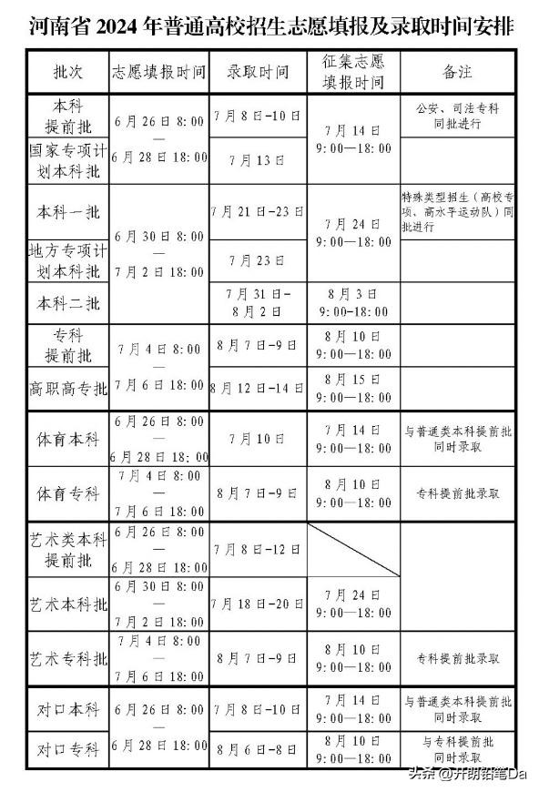 第二批本科(含地方专项计划、预科和定向):7月24日至7月31日。