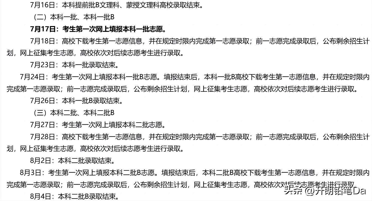 7月25日8:00-17:00:填报本科批第一次征集志愿;