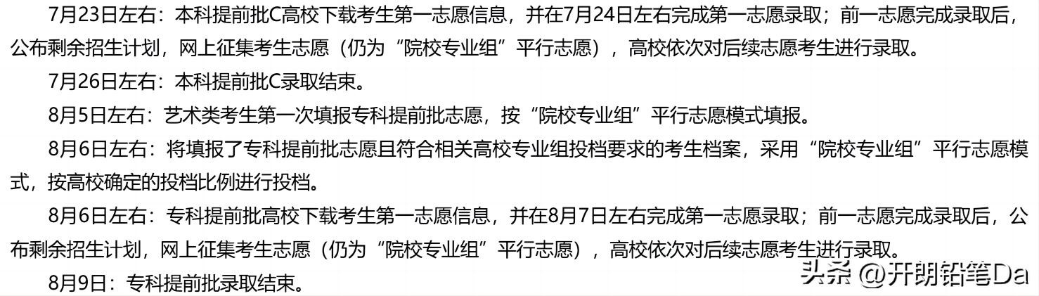 8月8日8:00-17:00:填报专科提前批征集志愿;