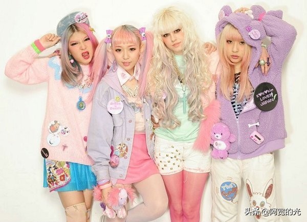 原宿风软妹的打扮会暖色系,例如粉紫色,会属有一些可爱的小饰品,硬妹打扮则是非常干脆利落,打扮一般会偏冷色系,会有一些例如眼球,鬼手这样的小饰品。
