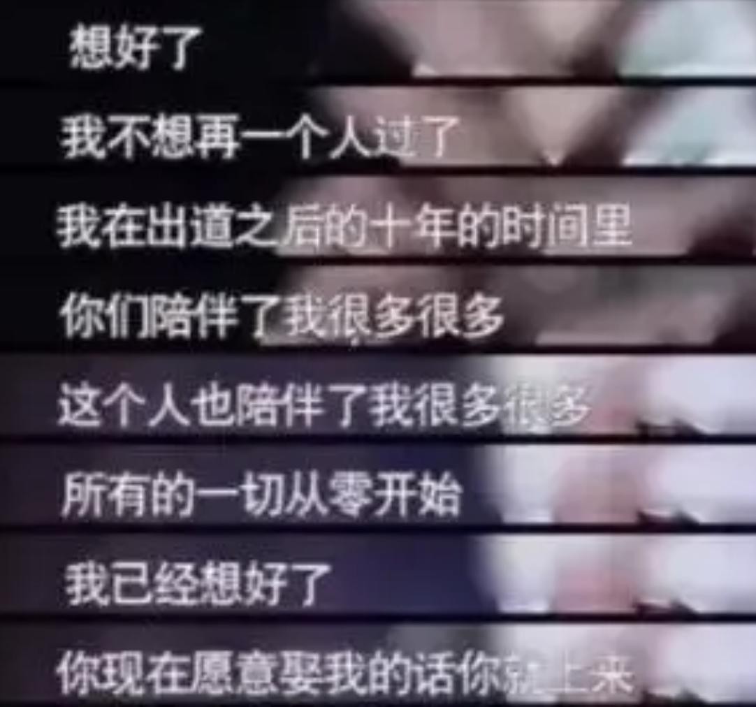 “我要做一件20岁就想做的事,我觉得我想清楚了,我不想再一个人过了,我在出道的10年时间里,这个人陪伴了我很多很多,我已经想好了,你现在愿意娶我的话你就上来。”