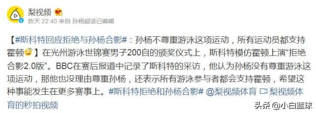 英国选手斯科特拒绝与孙杨合影