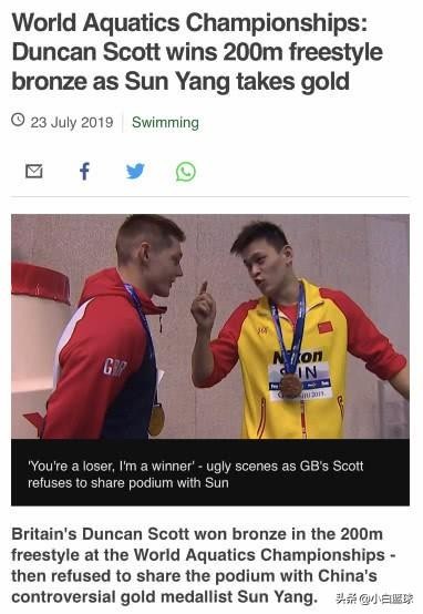 昨晚的光州游泳世锦赛男子200米自由泳决赛后,获得铜牌的英国选手斯科特拒绝与冠军孙杨合影,复制了此前澳大利亚选手霍顿拒绝与孙杨站上领奖台,没想到,澳大利亚中锋博古特也在社交平台上讽刺了孙杨。