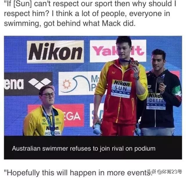 而且他还说:“如果孙杨不尊重这项运动,那我们为什么要尊重他?我希望,有更多人站出来,支援霍顿。”