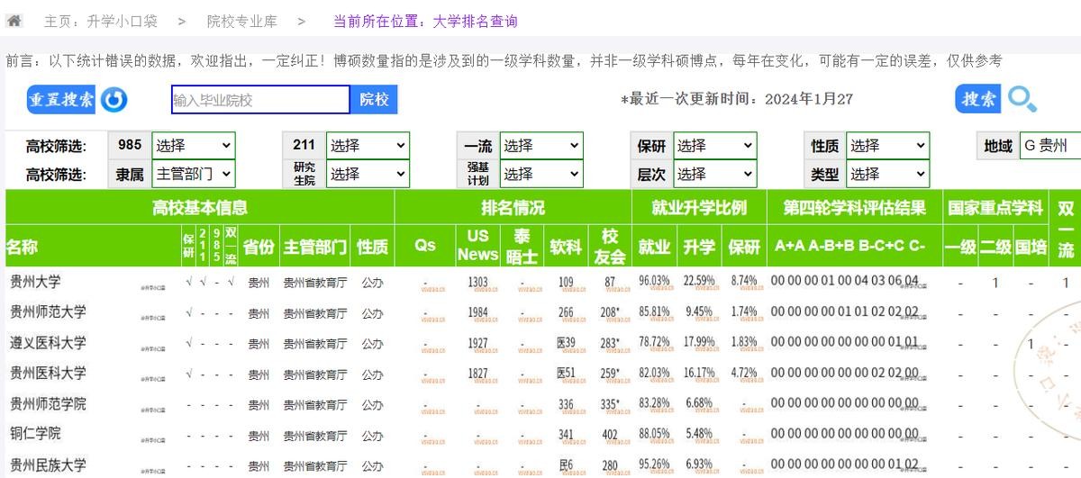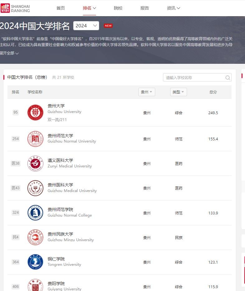 随着教育的发展,高校排名成为了人们关注的热点之一。近日,2024年全国高校排名已经出炉,贵州省的高校也位列其中。本文将对贵州高校的排名情况进行详细分析,并探讨各高校的优势和劣势。