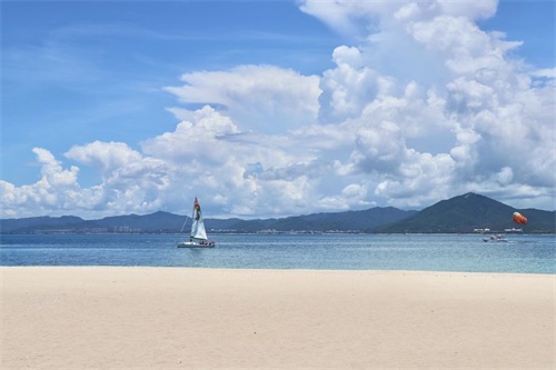 亚龙湾的沙滩质量是四个湾中最好的,虽然被多家五星级酒店分割了一部分,但也能从公共沙滩的入口进入。