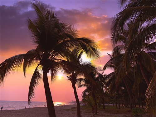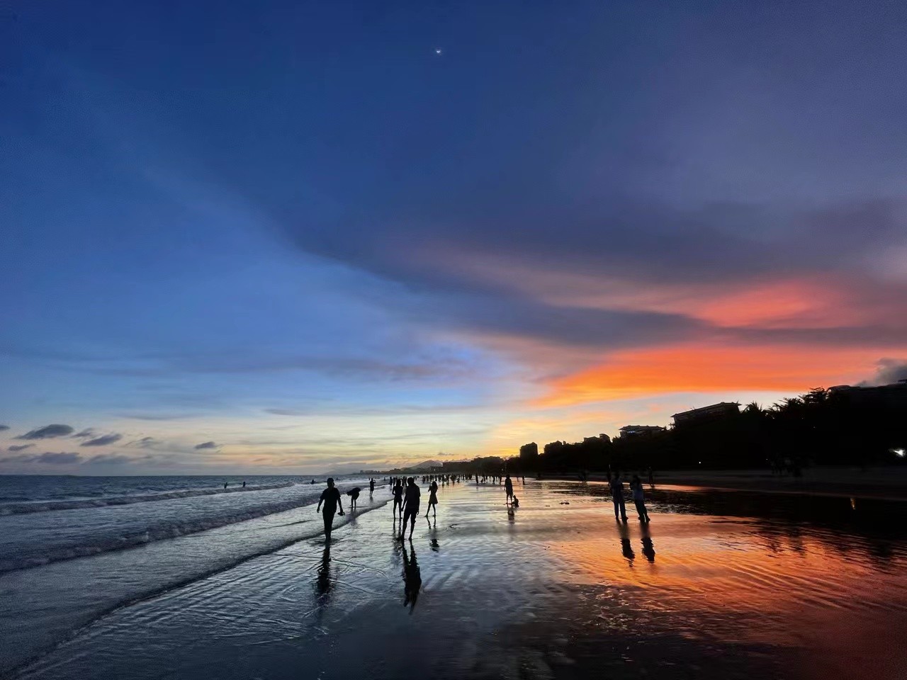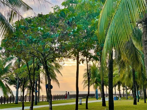 傍晚时分金黄色的落日晚霞会布满整个椰梦长廊的上空,如果有云彩还会形成难得一见的火烧云现象。