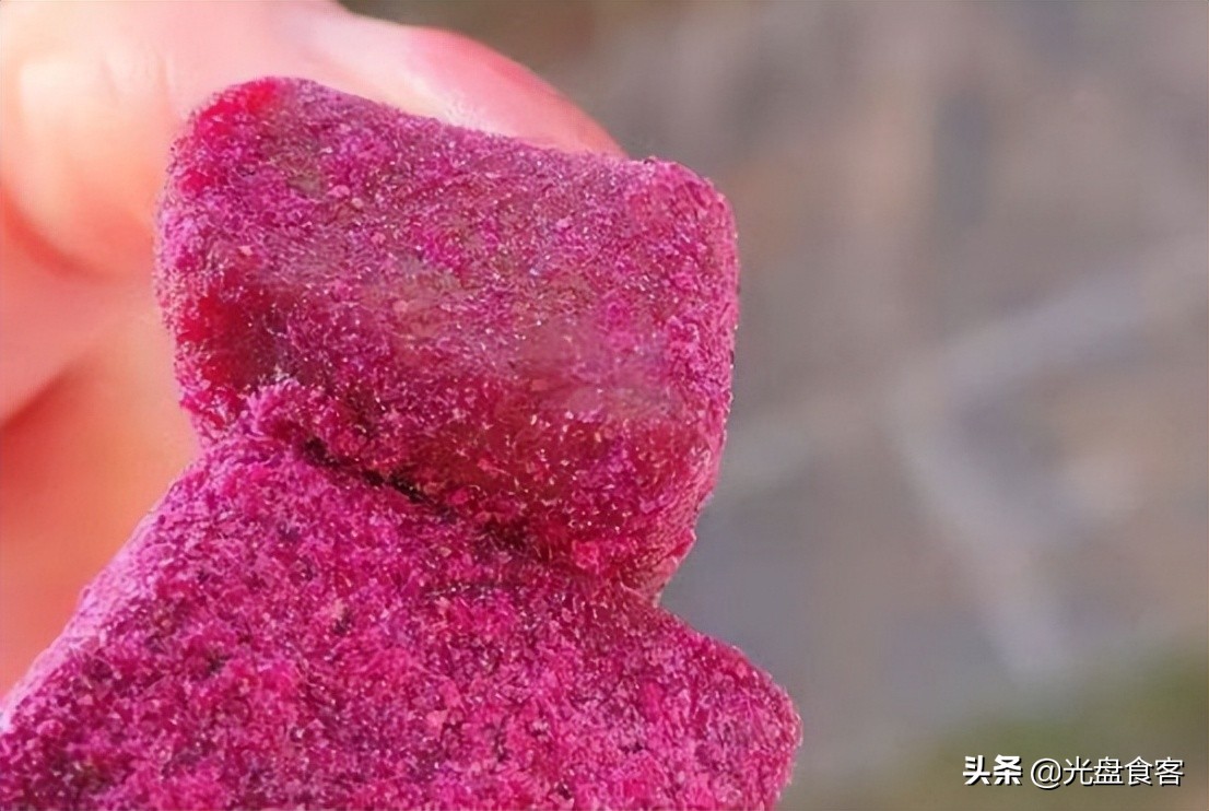 相比于山楂片的单一口感,我更喜欢这加入的桑葚的果条。吃起来酸酸甜甜的,Q弹有嚼劲,还能闻到淡淡的果香。每一口下去,都是满满的回忆。