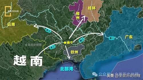 上游是左江和右江,下游是郁江,分别可以通往云南、越南和广东