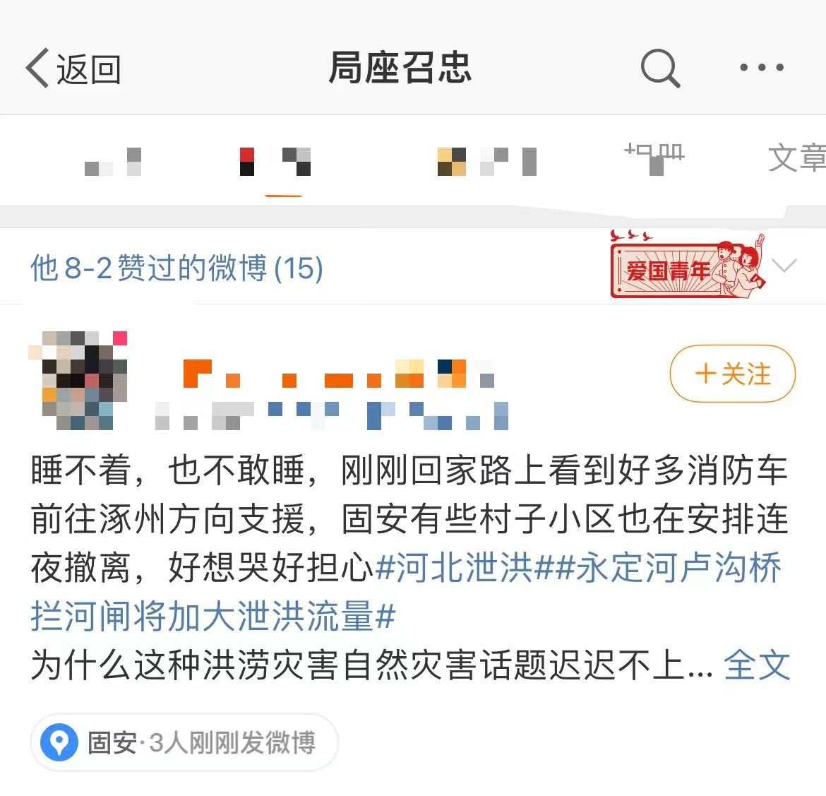但是,他还在时刻关注着祖国的动态,上个月的2号,他还在社交软件上点赞了有关涿州的消息,自此评论区都是对局座的欢呼声。