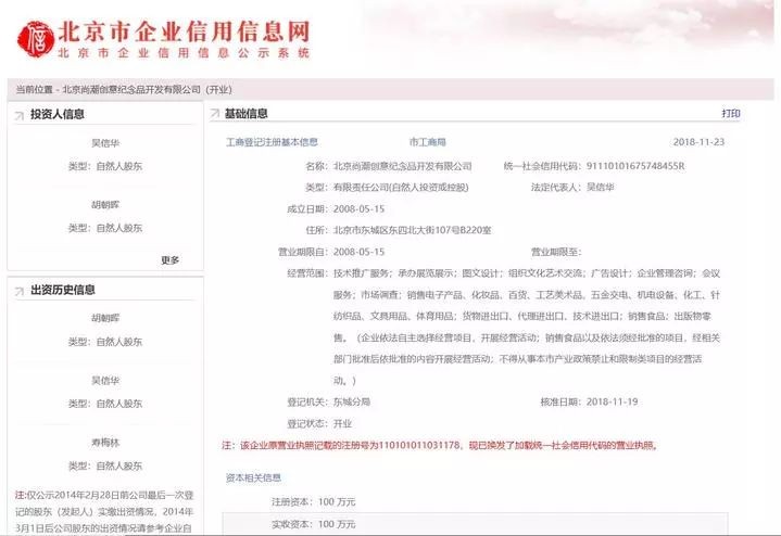这家公司是一家民营企业,由三个自然人出资成立,企业业务里有一块就是开发故宫文创产品。