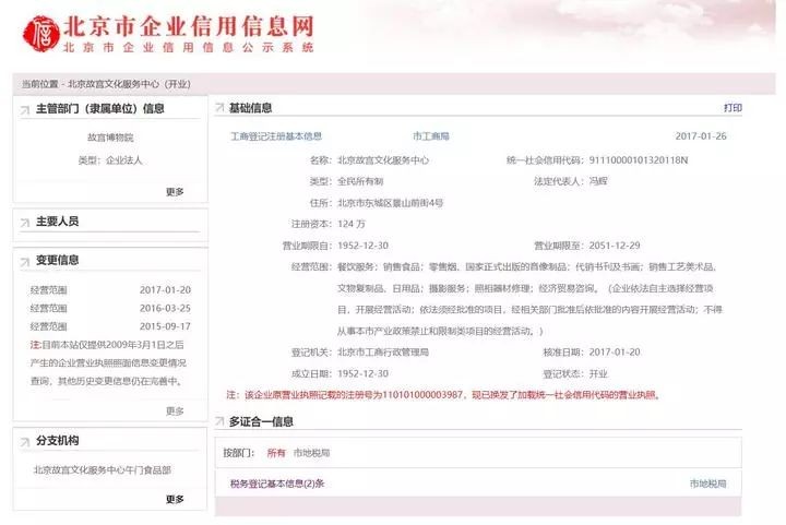 据工商资料显示,北京故宫文化服务中心,由故宫博物院100%出资成立的国有企业。