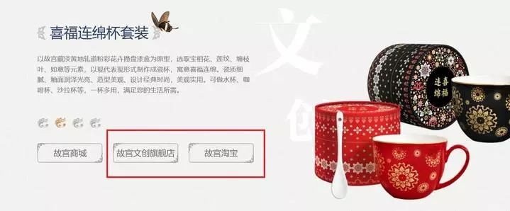 在故宫博物院的官网上,“文创”一块下面,“故宫文创旗舰店”、“故宫淘宝”都有直达链接,可见都是官方认可的。